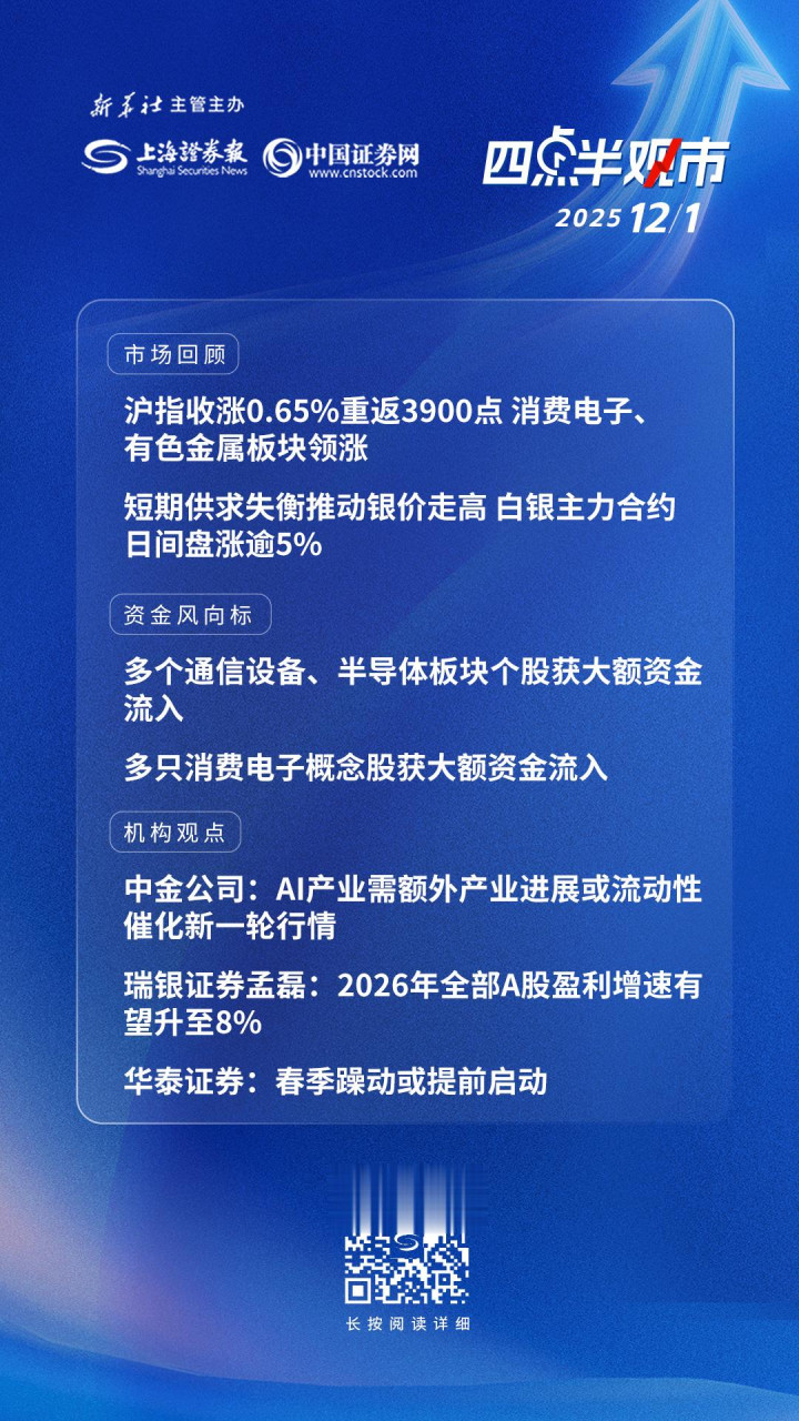 12月首个交易日,A股市场迎来“开门红”,沪指重返3900点关口。截至收盘,上证指数报3914.01点,涨0.65%;深证成指、创业板指分别上涨1.25%和1.31%。沪深两市合计成交1.87万亿元,较上周五放量2881亿元。