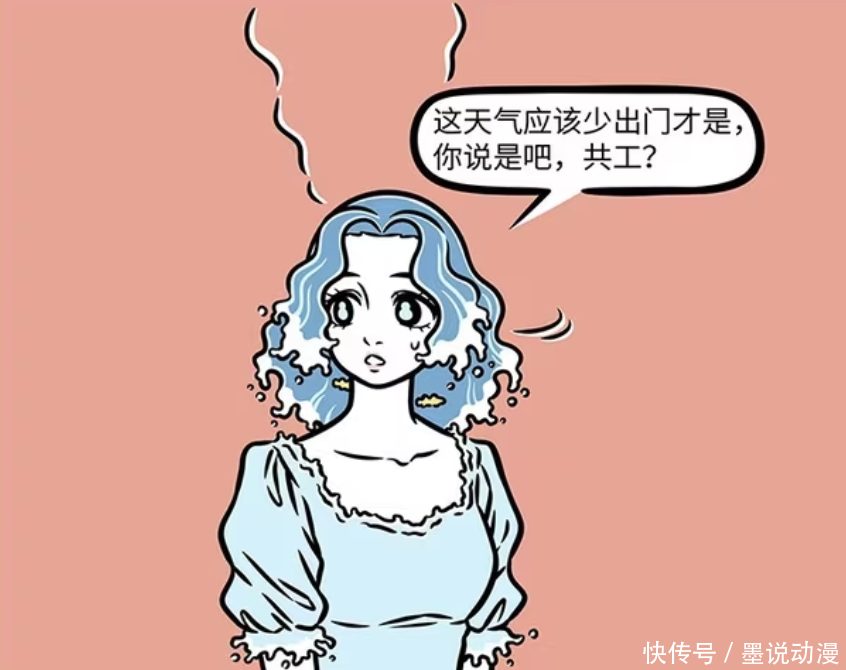 因为知道这种天气实在太过炎热,妈祖善意提醒少出门。此时共工似乎没办法回应妈祖,那么他的情况到底怎么样?是身高变矮了许多,还是有其他遭遇?