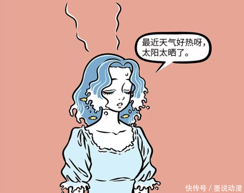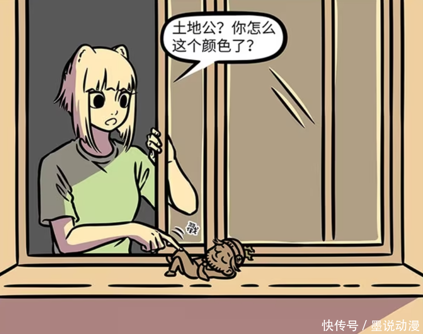 《非人哉》漫画版,神仙精怪们也怕炎热的夏天。原本土地公只想着找个地方午睡,结果却被晒成干。九月一碰土地公,他的身体瞬间破碎,因此九月觉得自己弑神。至于妈祖,因为夏天气温太高,导致头发蒸发了一部分,所以变成短发模样。共工被夏天影响更严重,那是直接蒸发。